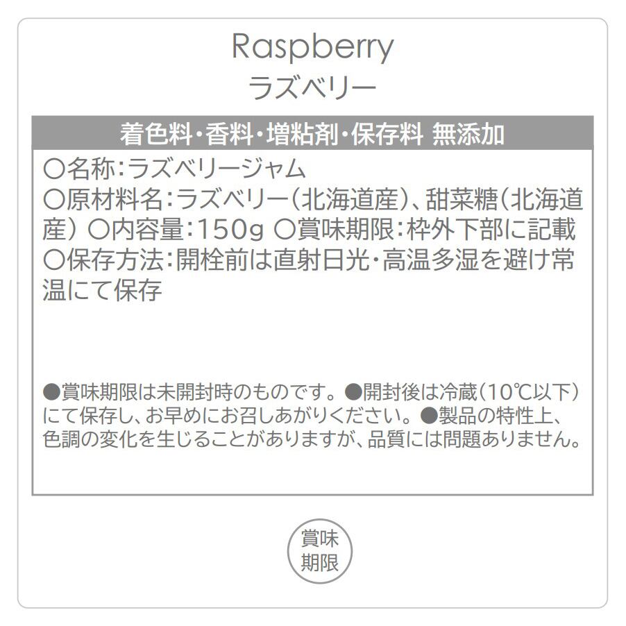 北海道の自然豊かな環境で農薬をつかわずに栽培されたラズベリーでつくられた、フルーティーなジャムです。